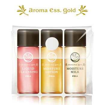 【メール便】POLA ポーラ アロマエッセゴールド コスメ 化粧品 9mlx3点セットポーチ入り(リキッドクレンジング・モイスチャーローション・モイスチャーミルク)お試し 送料込み