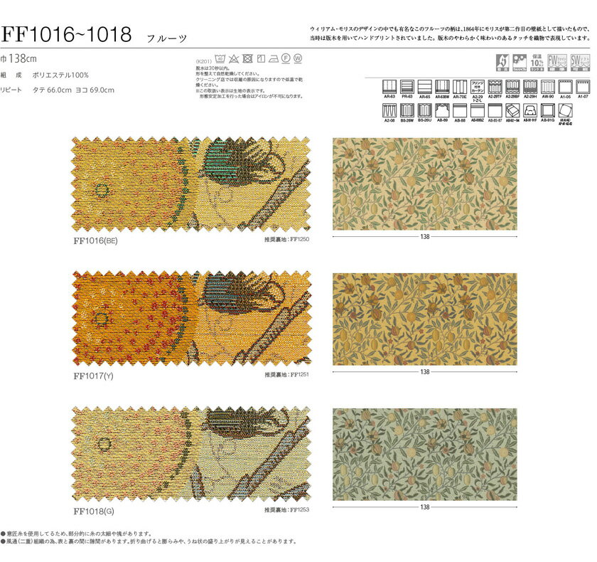 川島織物セルコン ウィリアム モリス カーテン filo フィーロ ドレープ▼ソフトウェーブ縫製 下部3ッ巻 フラット 両開き▼ William Morris フルーツ FF1016〜1018【幅649〜786×高さ60〜100cm】防炎イザベル ウォッシャブル 保温ランクB