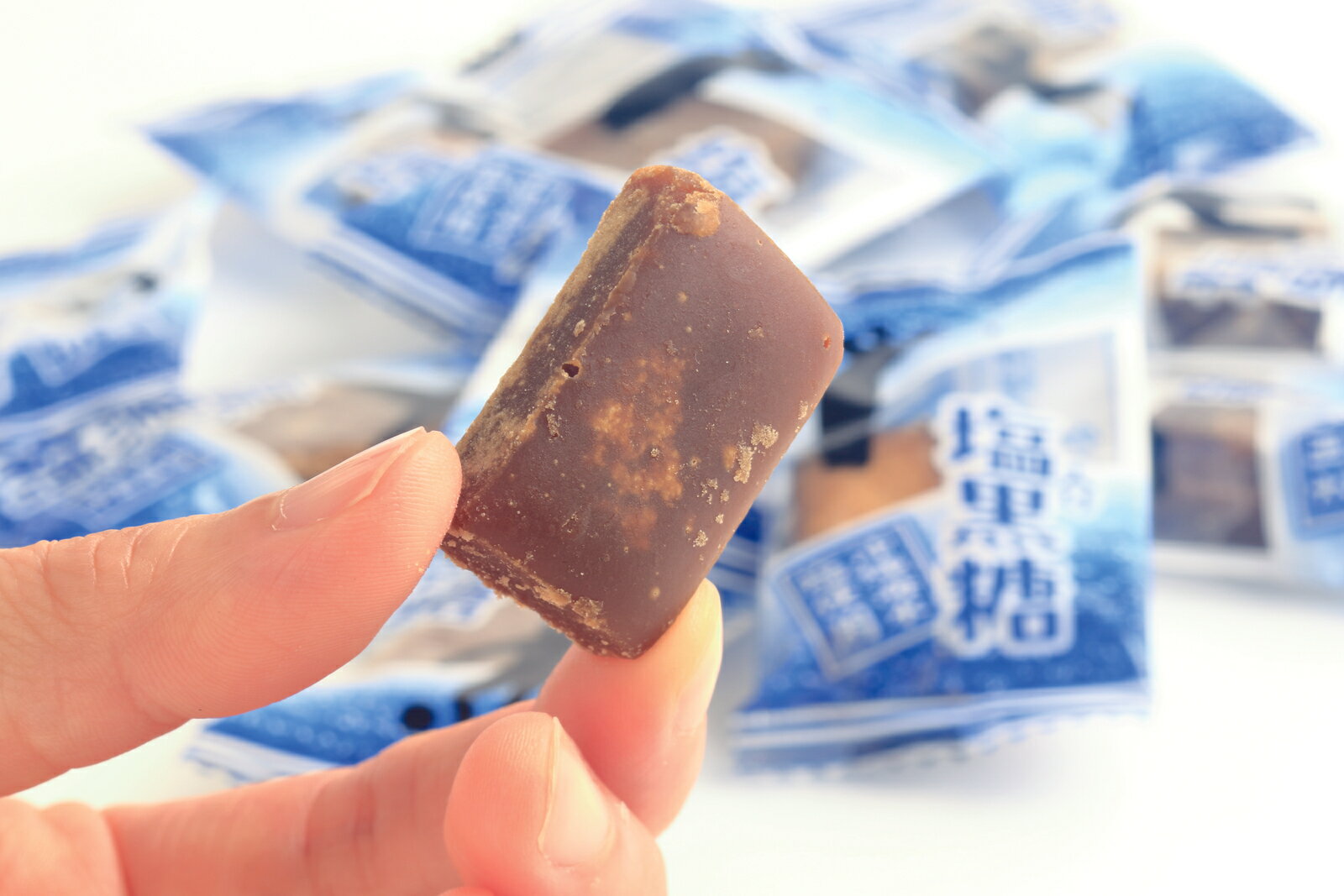 糖分と一緒に塩分も摂れる昔ながらの≪塩入り黒糖≫をどうぞ。