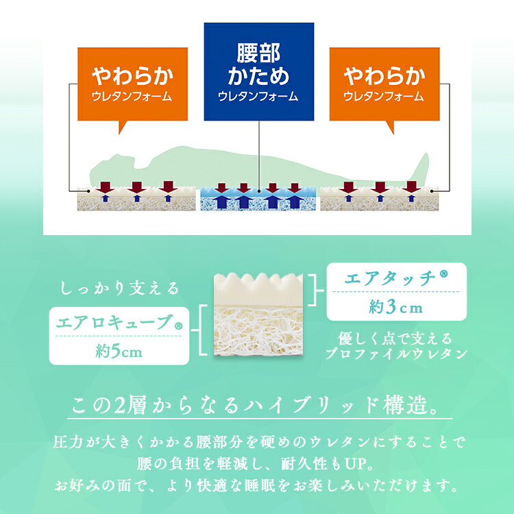 腰部硬めのバランスタイプのエアリーハイブリッドマットレス センターフィット。