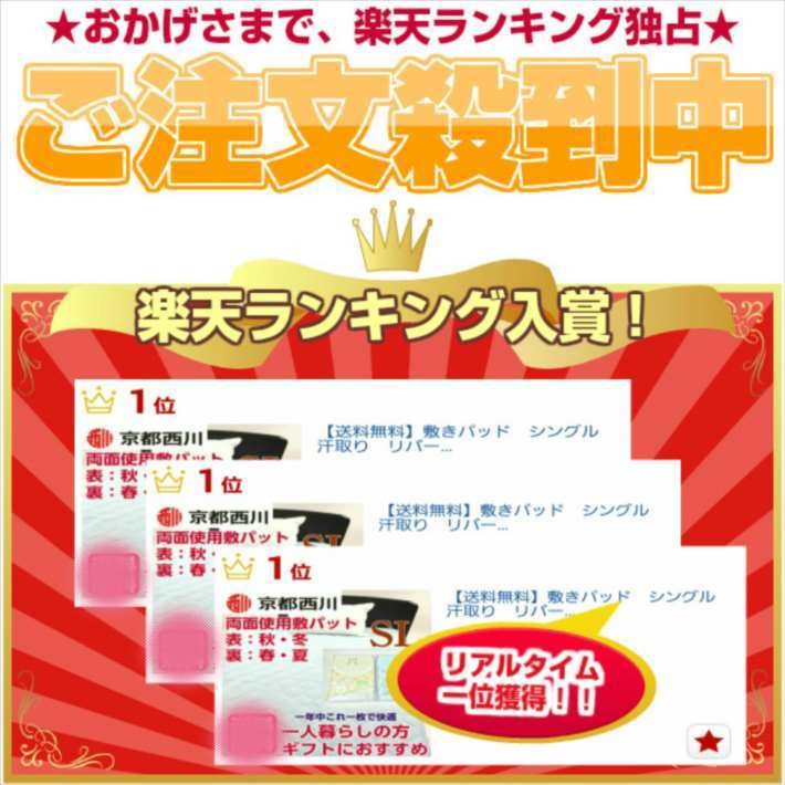 この商品は 【訳アリ在庫処分最安値挑戦】敷パッド 西川 シングル 夏 さらさら 綿100% 秋 洗える リバーシブル オールシーズン 綿 シングルロング 敷パット 京都西川 ギフト用 敷きパット 丸洗い ポイント 京都西川 敷パッド 敷パット 汗取り リバーシブル 綿 シングル 一部黄色のシミがあります 【楽天リアルタイムランキング1位獲得!!】 オールシーズン使える京都西川のリバーシブル敷パッド!!楽天市場リアルタイムランキングで1位獲得!!綿100%で小さなお子様からご年配の方まで幅広くお使いいただけます ショップからのメッセージ →→ムアツ布団単品はこちら!!→→西川二枚合わせ羽毛布団単品はこちら!!→→西川2枚合わせ毛布単品はこちら!!→→当店オススメ布団セットはこちら!! 納期について 4