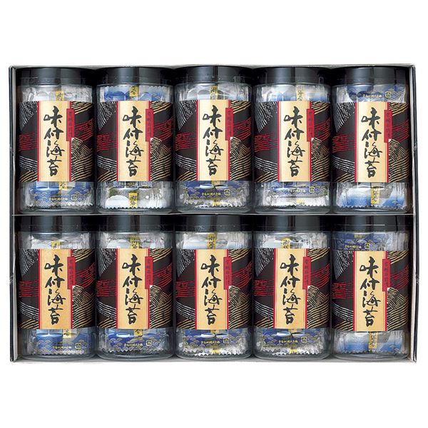 ▼商品名東海のり 有明の詩情 味付海苔▼セット内容(1セット)(サイズ・重量)味付のり(8袋詰8切5枚板のり5枚)×10▼賞味期間常温540日▼アレルゲン表示小麦・えび▼製造/品番日本製/KY-50N※内容・デザインなど変更になる場合があります。