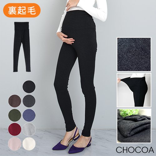 【産前産後マタニティ レギンス】 裏起毛レギンス<暖かい素材 伸縮ストレッチ フリーサイズ 手洗い可 おなかカバー 肌に優しいコットン> 全9色 10分丈 冷え対策【おしゃれ レディース マタニティウェア・授乳服 チョコア CHOCOA】<メール便可>