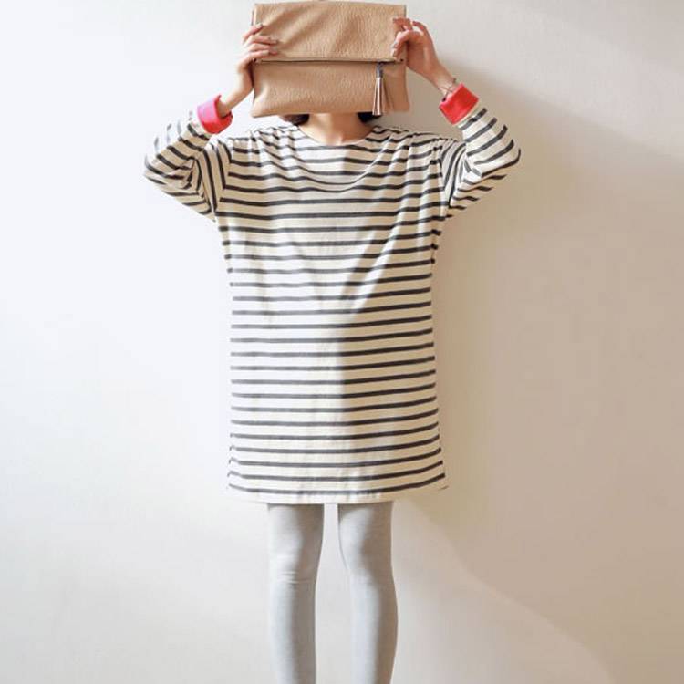 チュニック丈ワンピースなので、レギンスと合わせてコーデが楽チン! 薄すぎ厚すぎないほどよい生地感で、春秋の主役級アイテムに間違い無しです。