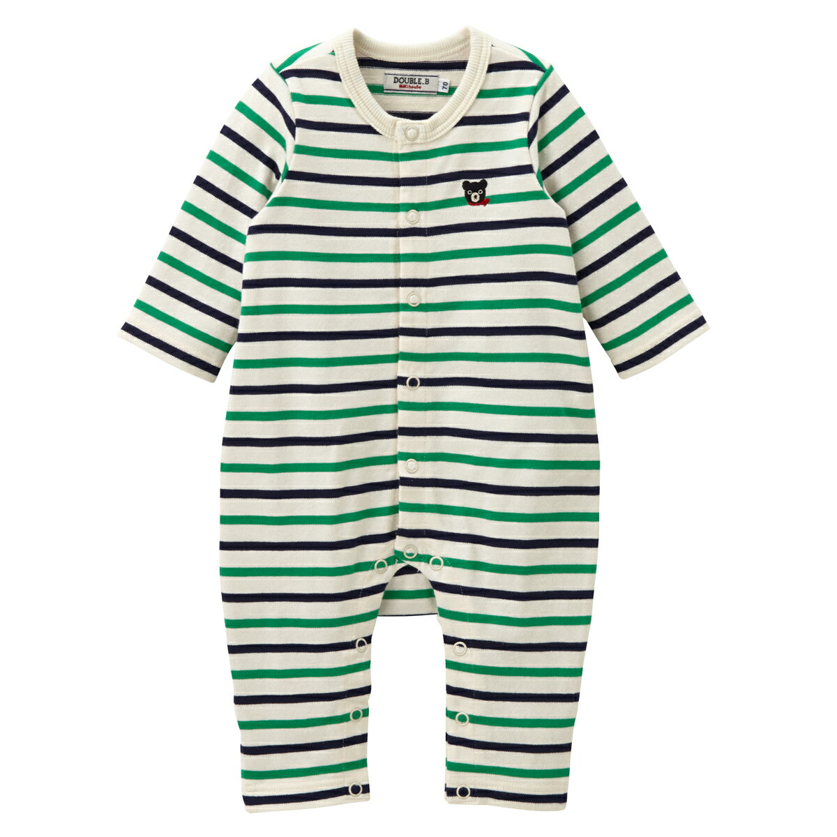 ミキハウス ダブルビー mikihouse Everyday DOUBLE_Bボーダーカバーオール(70cm・80cm) ベビー服 子供服 ロンパース 女の子 男の子 前開き